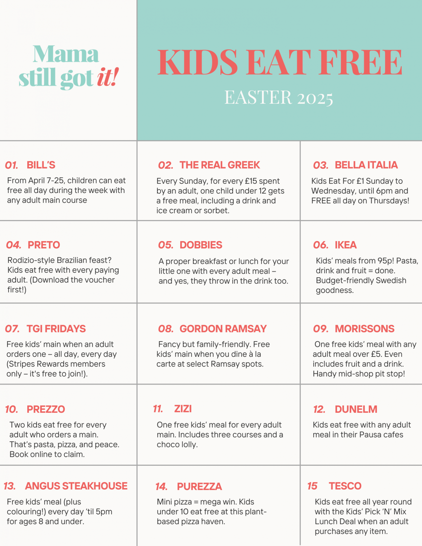 It’s back again – I’ve rounded up all the places where your little ones can eat for free this Easter. Keep it close by for when you need it!